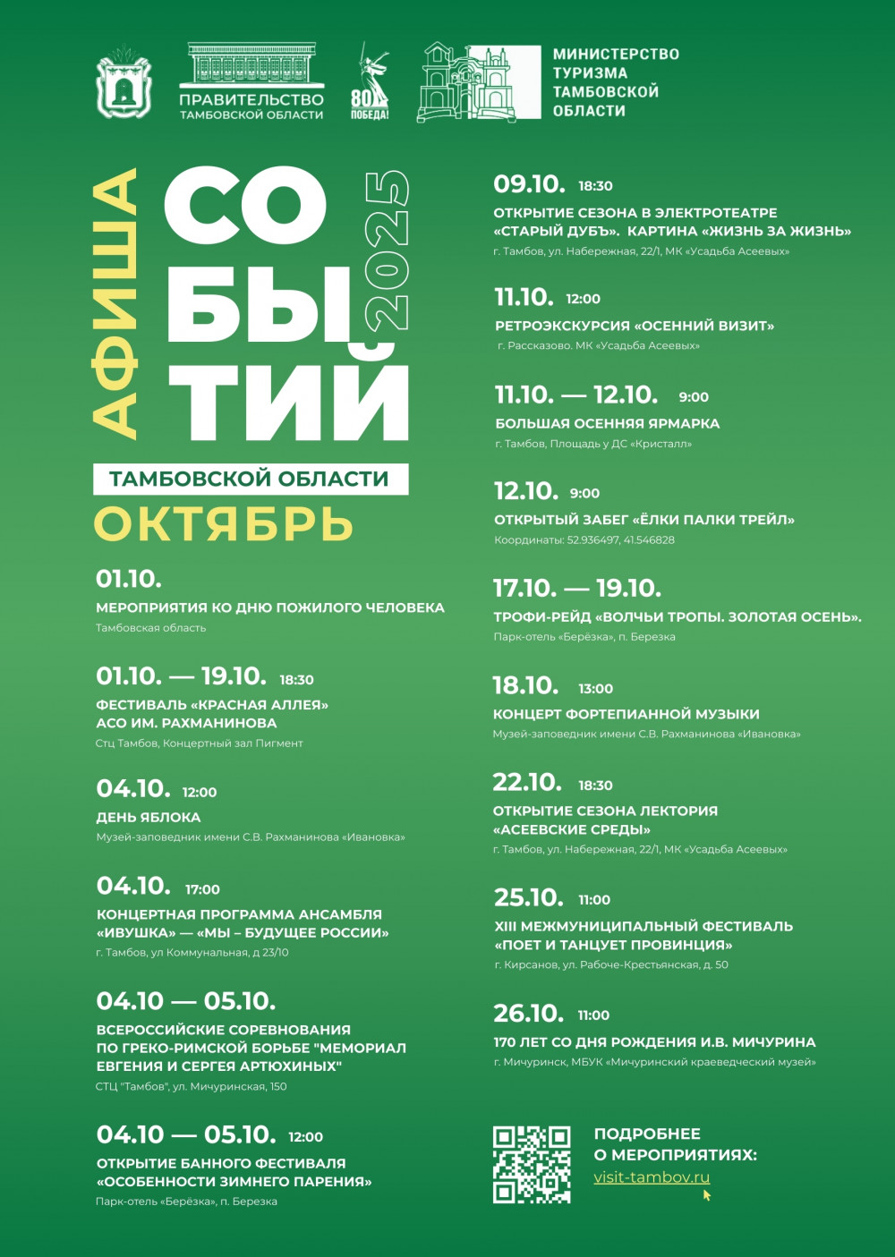 25 октября | 11-00 | XIIIМежмуниципальный фестиваль «Поет и танцует провинция» | г.Кирсанов, ул.Рабоче-Крестьянская.д50 Центр досуга «Золотой витязь» | Вход свободный |